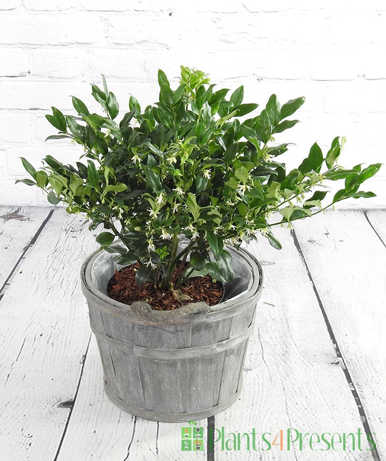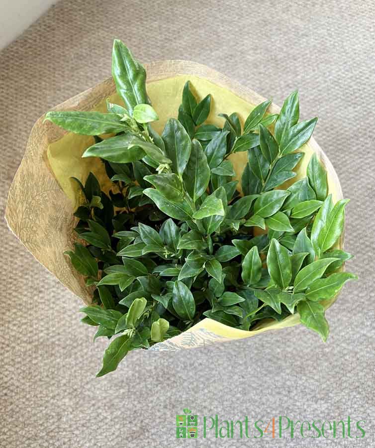 Scented Box or Christmas Box (Sarcococca confusa) are really outdoor plants, but when they are young they make decorative pot plants in a cool room, producing tiny fragrant flowers in the winter and early spring.