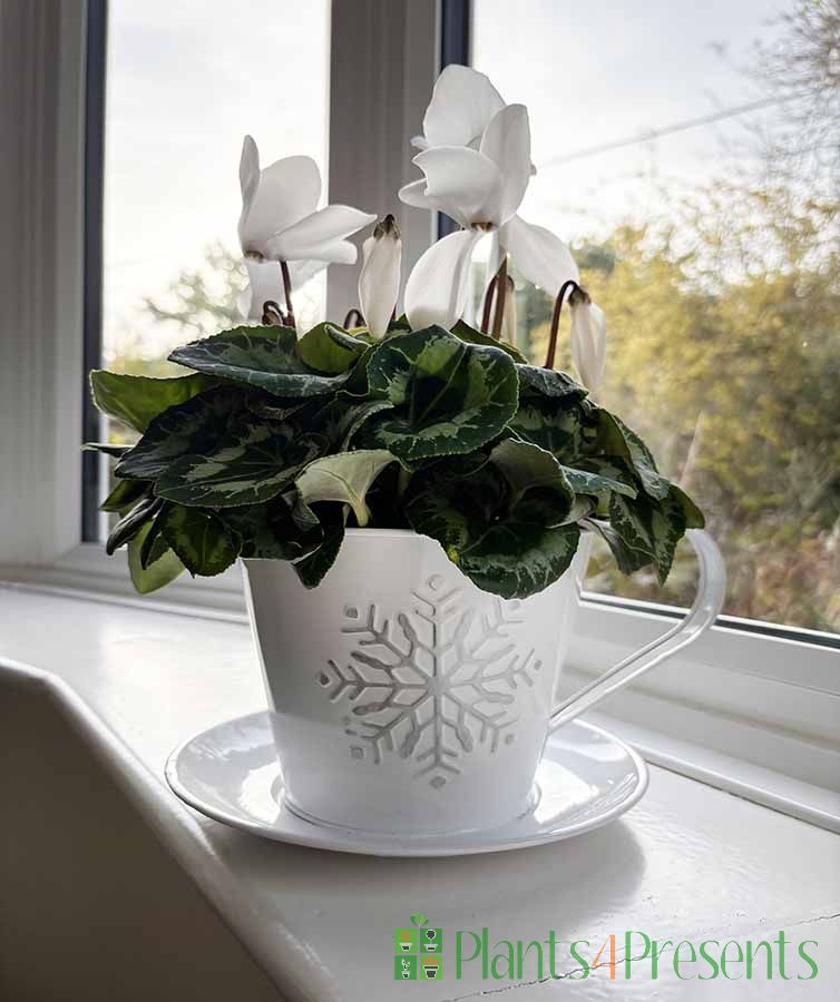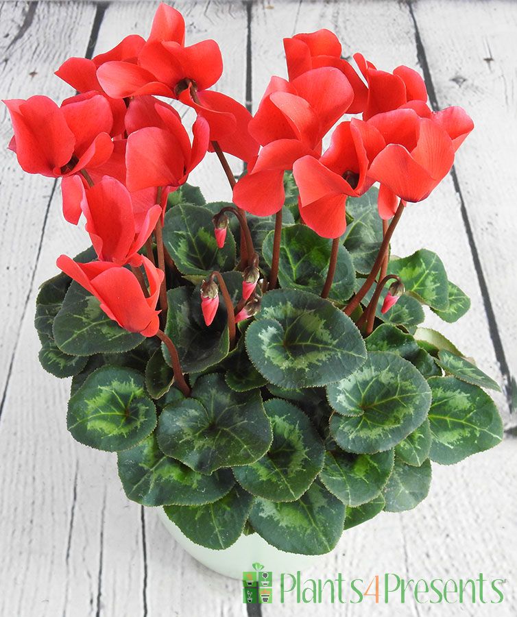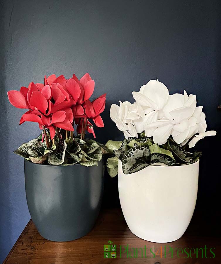 These large cyclamen pots will flower on and on for weeks in a cool room. Always popular in this size and available with a choice of stylish indoor plant pots, choose your preferred flower colour from the drop down menu.