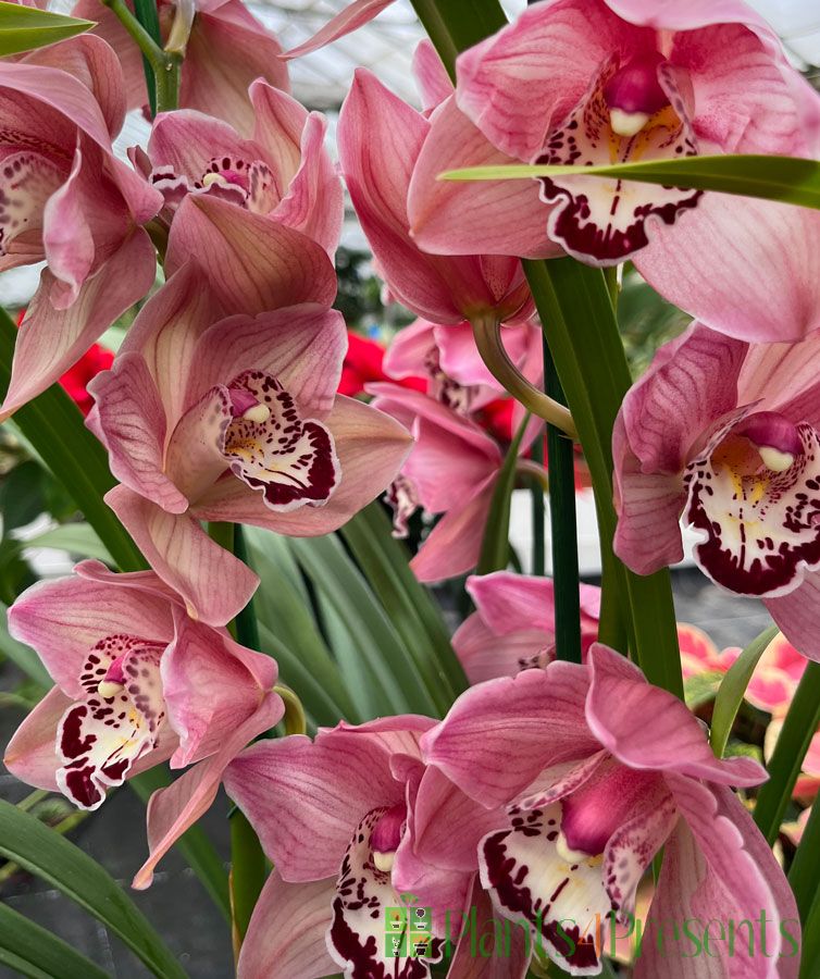 This beautiful orchids have to be seen to be believed. As well as some pretty pink cymbidiums we have some really unusual dark burgundy and spotted cymbidiums this week.