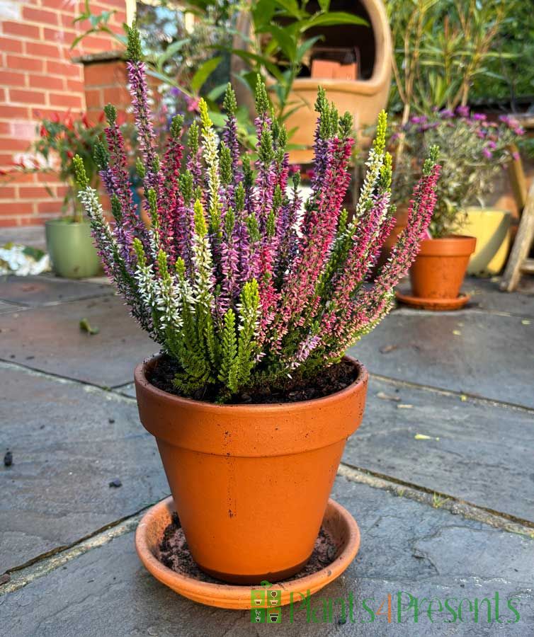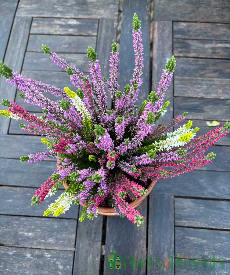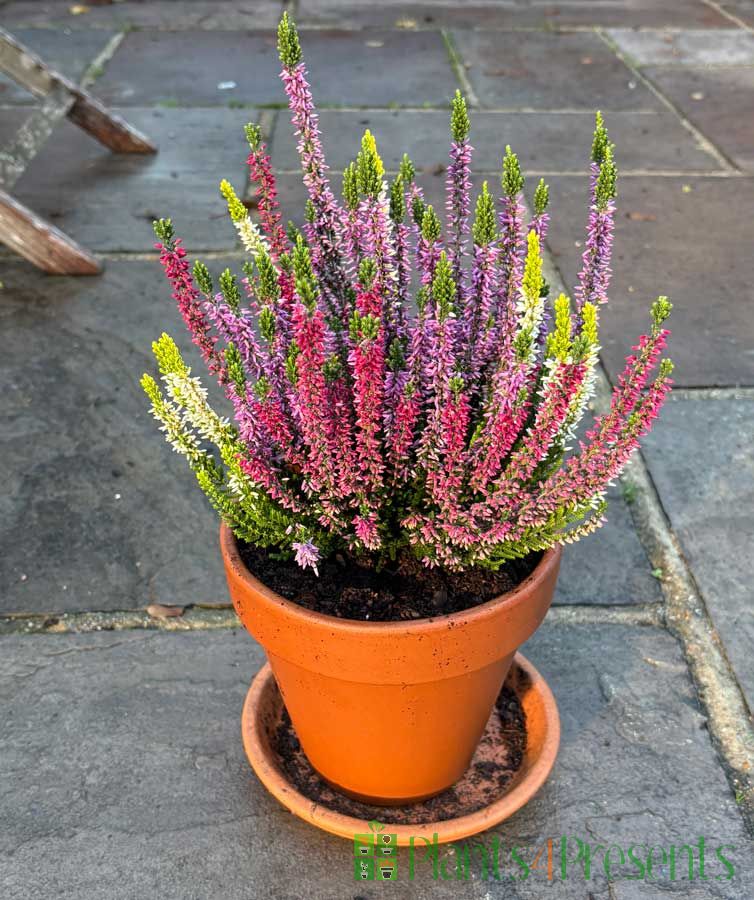 We're loving these brand new multicoloured heather plants. Produced by growing several brightly coloured calluna plants together in one pot, these pots would make a stunning addition to a patio or doorstep.