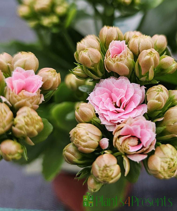 This flowering Succulent (Kalanchoe blossfeldiana) is grown for the flamboyant flowers which emerge from the end of the leaves, and the blooms should last several weeks, and with a little care should come back year after year.