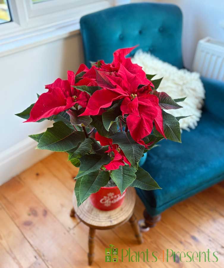 Once they arrive and are unwrapped, choose a warm room away from any draughts to show off these stunning poinsettias.