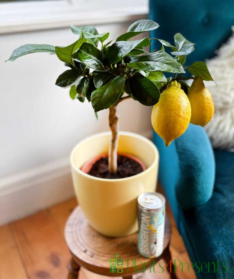 These lovely lemon4seasons trees are always popular and make fab gifts paired with a super tasty pre-mixed cocktail from our friends at Brighton Gin. Just as pictured, they have a neat shape and already at least one decent size green or yellow fruit developing . Over the coming weeks and months these fruits will slowly ripen into the tastiest of full size lemons.