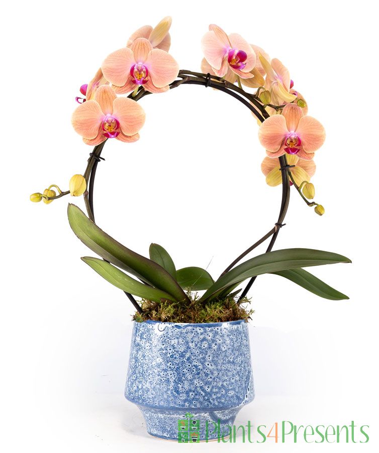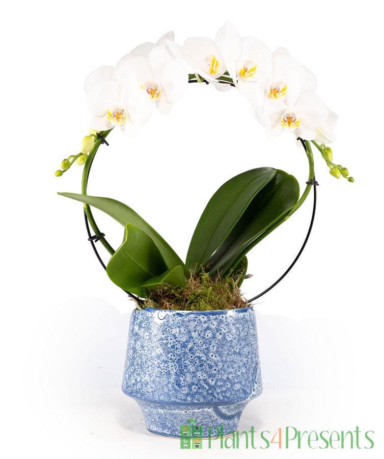 Great for modern or traditional homes, these orchids will be available in choice of white or peach flowers and in either a gorgeous blue marbled or dark green marbled pot for February 2026. Just make a note below if you have a preference and we'll update this page with new lifestyle pics as soon as they arrive.