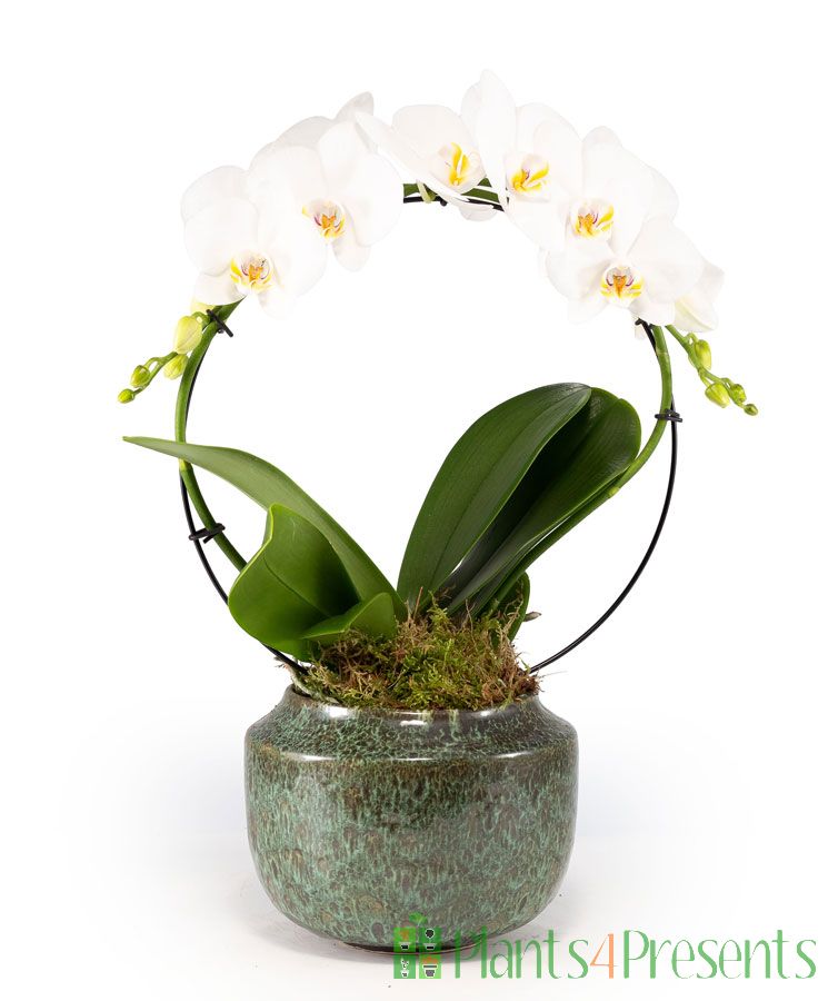 Phalaenopsis orchids are always popular as they bloom for such a long time with very little care. This particularly stylish presentation will make a really special gift for mums but also anyone with a sense of style.