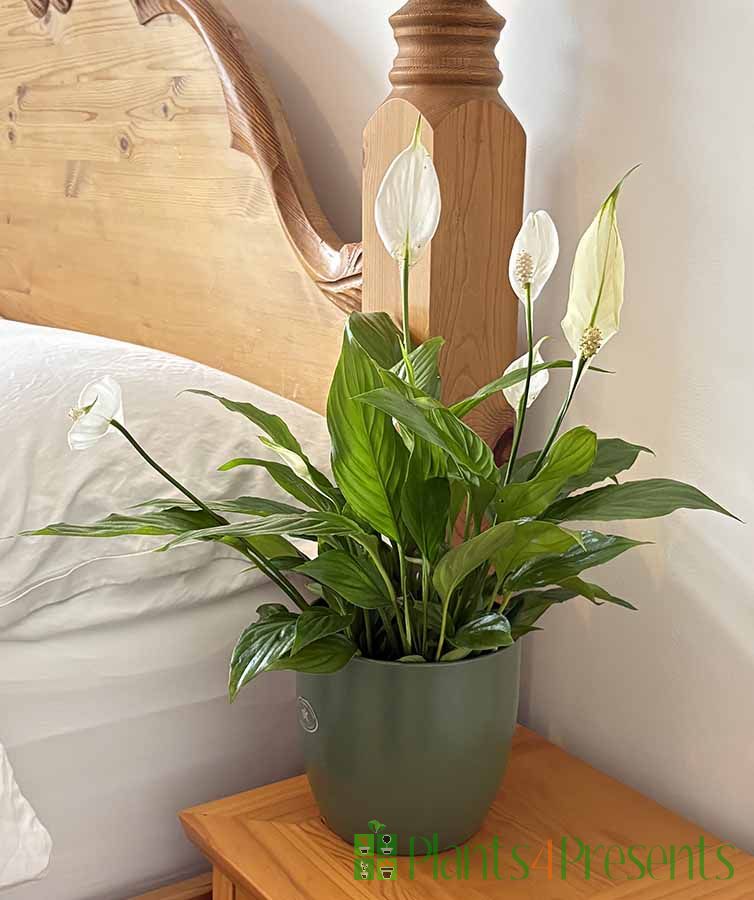 A lovely addition to the home, these cute peace lilies have at least 4 or 5 budding or flowering spathes and are presented in a choice of attractive ceramic or festive pots.
