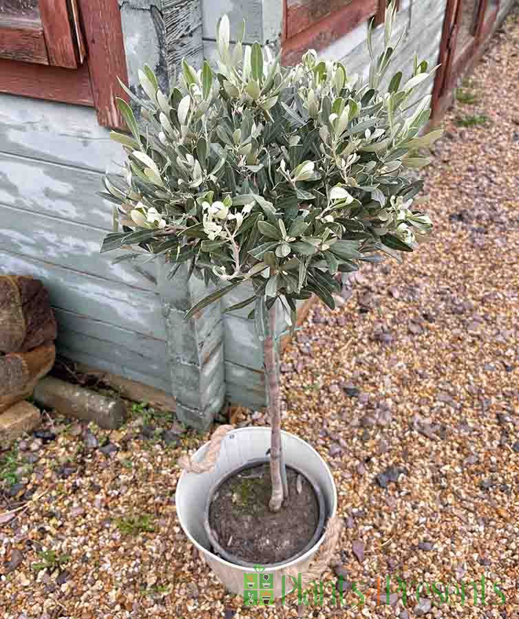 This Mediterranean Large Olive Tree (Olea europaea) will do well outside in a sheltered spot in the UK or indoors as a feature in a light room or conservatory. At this size, our large olive trees will tolerate some frost and will produce small white flowers in late spring followed by fruits later in the year.