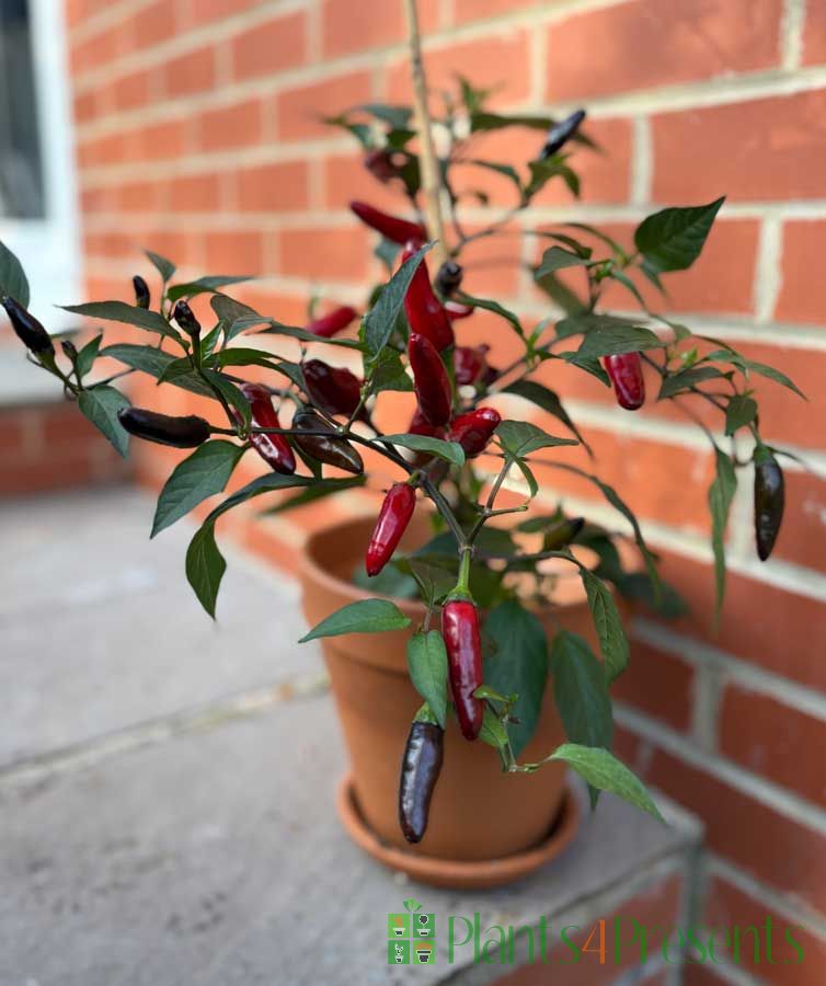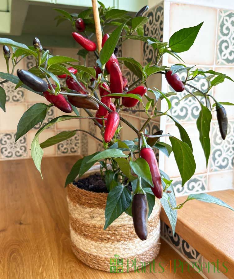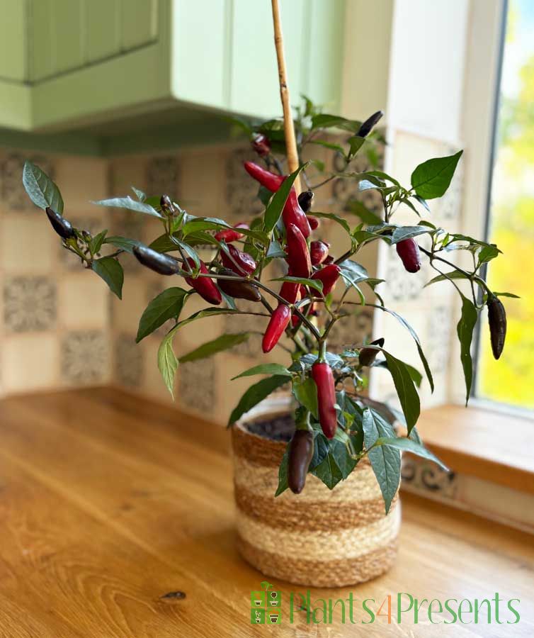 These dramatic looking pot black chillies make a fantastic and unusual gift. The black fruits are milder than the red and are delicious raw in Asian salads and dips.