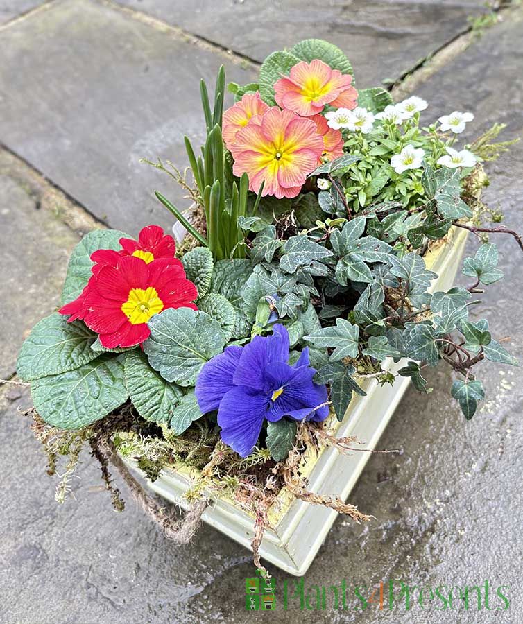Your planter has been made up fresh at the nursery; please do not be alarmed if there is any loose soil, this can be gently firmed back in upon arrival.