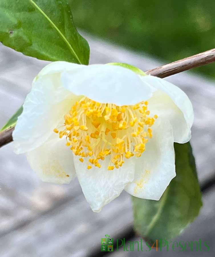 Tea plants produce small fragrant flowers in winter and dark glossy leaves year-round. Once you have a sizeable bush the leaves can be harvested fresh to make green tea or dried to make traditional or ‘brown’ tea. To develop a more ‘bushy’ shape you may wish to pinch out the top few leaves every now and then.