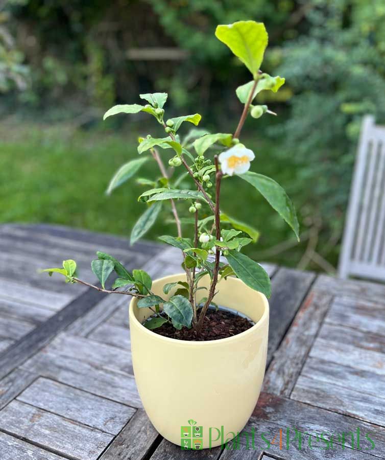 This week's tea plants are lovely strong plants with plenty of evergreen foliage and even a few pretty white flowers These hardy tea plants will grow on well in a sheltered garden and eventually produce plenty of leaves to harvest, making them a great gift for someone who loves a good brew.