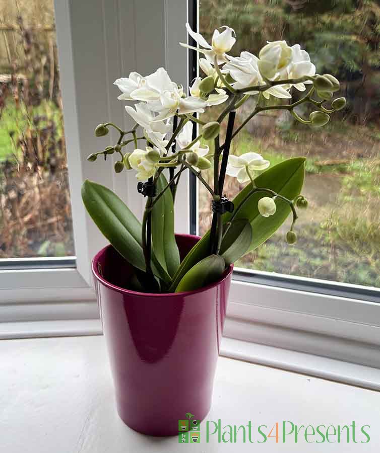 These Incredibly long lasting phalaenopsis orchids are a great easy going gift for the home and will be equally as happy in a bedroom, bathroom or kitchen.
