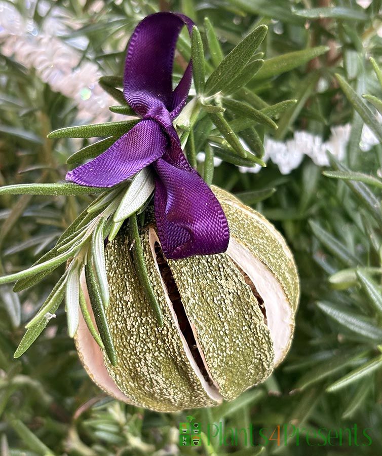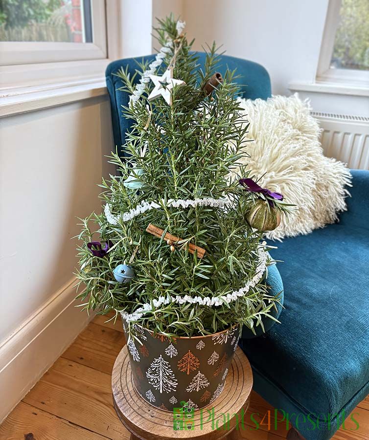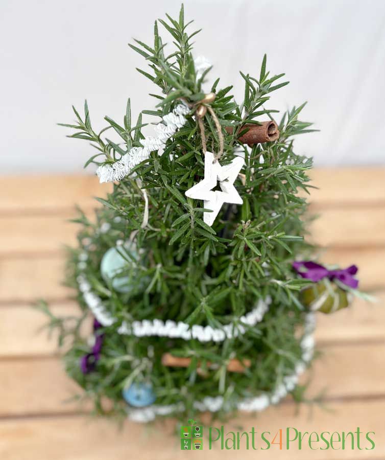 These Christmas Rosemary pyramids make a great alternative Christmas tree that can be planted out in the garden at the end of the festive season. Decorated with pretty blue and green metal bells and cute dried fruit decorations, these festive trees will look great in a cool kitchen or living room and add a lovely fragrant scent to their surroundings.